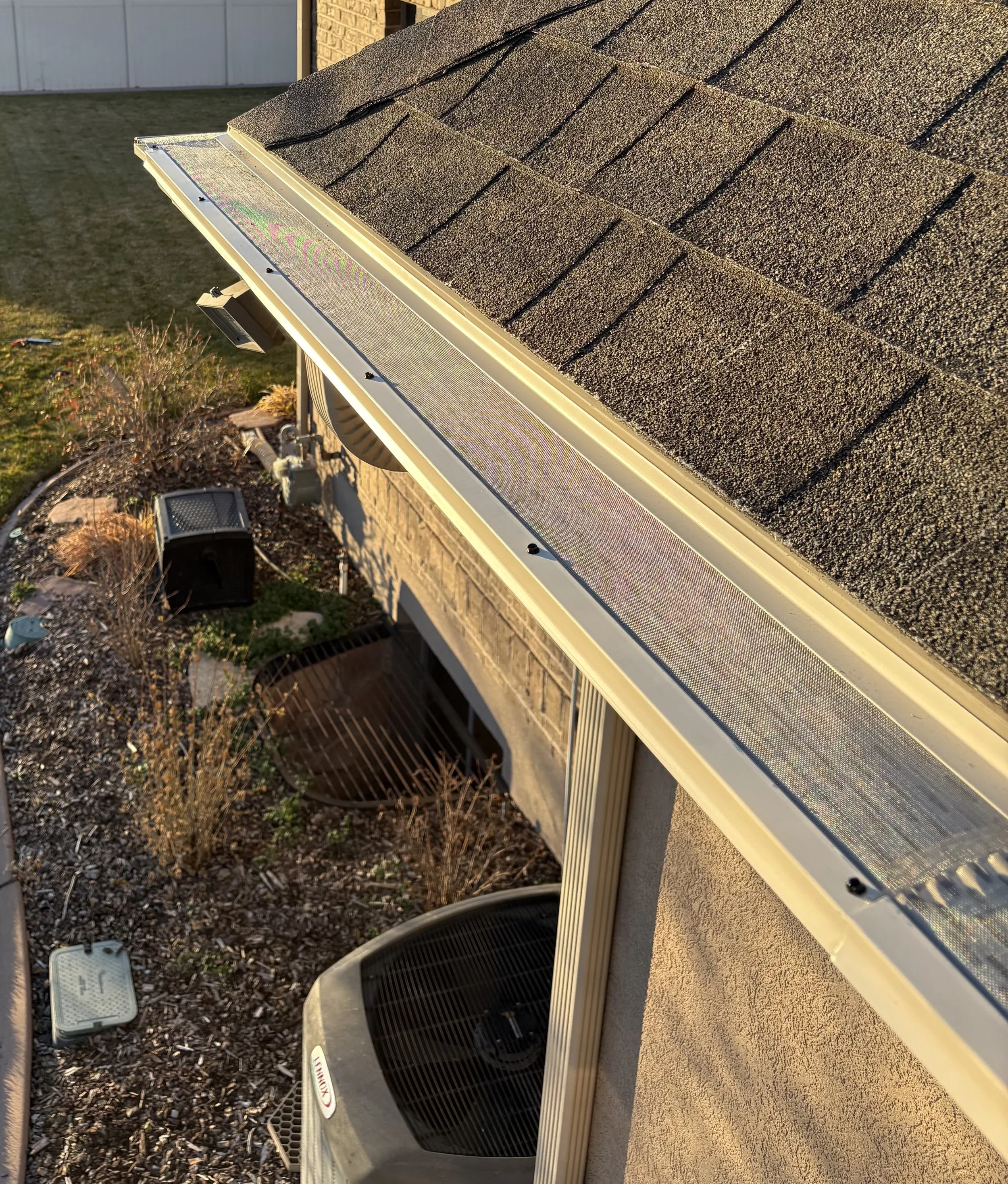 GutterBuzz& Exteriors Before & after If you’re tired of your gutters looking like this, give us a call. Our product ensures you’ll never have to clean your gutters again.